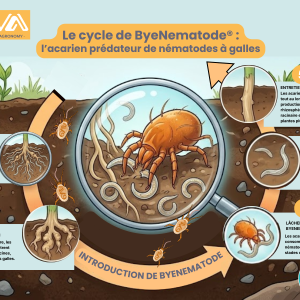 Chaque acarien prédateur de ByeNematode® peut consommer plusieurs centaines de nématodes par jour. Ce mode de régulation biologique limite les risques de résistance et s’appuie sur une espèce naturellement présente dans les sols, sans risque de nuisibilité pour l’environnement.